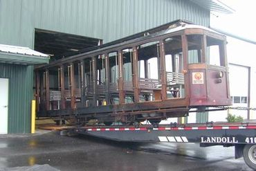 HRR was awarded the contract to refurbish the body and propulsion system for a trolley car located in Rockford, Illinois that had suffered extensive fire damage. Upon arrival to HRR’s shops in Arlington WA, all wood on the body was removed, the entire roofline was removed and all mechanical components were removed to facilitate the rebuild. Metal car lines were install for the roof and a wood structure was built around them. A new 4-cylinder Chevrolet propane engine was installed to power the new hydro pump and motor, which propelled the car. All air system lines were replaced and air system mechanics were rebuilt. All of the car’s wire harnesses were replaced. And a DC to AC power inverter was installed to run the cars new air compressor.